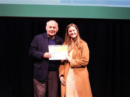 Megan Hansard receives her Scholarship provided by Rotary Club of Gosford. Presented by David Boardman at Red Tree Theatre on 17th July 2025.